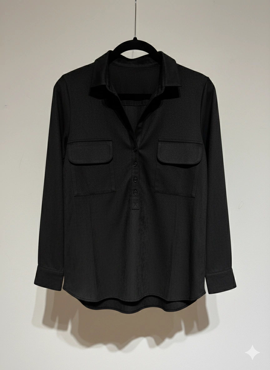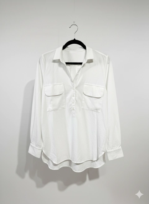 Eleva tu estilo con nuestra camisa de tela gamuzada, suave al tacto y elegante a la vista. Con un diseño adaptable de manga larga a 3/4 y botones en la solapa, es perfecta para cualquier ocasión. Disponible en blanco, azul marino, beige, verde militar y negro. ¡Un básico infaltable para tu guardarropa!
